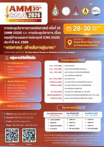 📢 เชิญชวนผู้สนใจเข้าร่วมงานประชุมวิชาการทางคณิตศาสตร์ (AMM 2026) และการประชุมวิชาการเรื่องทฤษฎีจำนวนและการประยุกต์ (CNA 2026) Read More