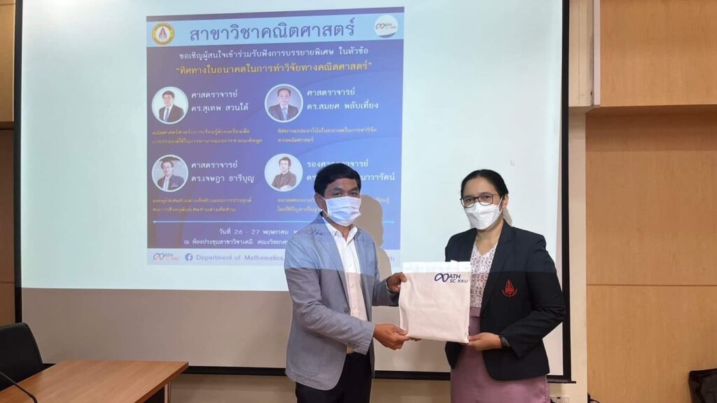 สาขาวิชาคณิตศาสตร์ คณะวิทยาศาสตร์ มหาวิทยาลัยขอนแก่น จัดกิจกรรมบรรยายพิเศษ ในหัวข้อ “ทิศทางในอนาคตในการทำวิจัยทางคณิตศาสตร์” ในวันที่ 26 – 27 พฤษภาคม 2565 ณ คณะวิทยาศาสตร์ มหาวิทยาลัยขอนแก่น โดยมีวิทยากร ดังนี้