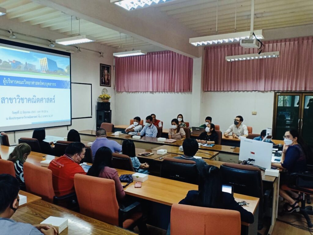สาขาวิชาคณิตศาสตร์ คณะวิทยาศาสตร์ มหาวิทยาลัยขอนแก่น ต้อนรับทีมผู้บริหารคณะวิทยาศาสตร์ และรับฟังนโยบายการบริหารของผู้บริหารชุดปัจจุบัน รวมทั้งให้ข้อมูลและข้อเสนอแนะเพื่อเป็นประโยชน์ในการสนับสนุนการบริหารงานคณะวิทยาศาสตร์ในอีก 4 ปีข้างหน้าต่อไป ในโครงการ “ผู้บริหารคณะวิทยาศาสตร์พบบุคลากรสาขาวิชาคณิตศาสตร์” วันที่ 22 มิถุนายน 2565 เวลา 09:00 – 12:00 น. ณ ห้องประชุมสาขาวิชาคณิตศาสตร์ อาคาร SC.07
