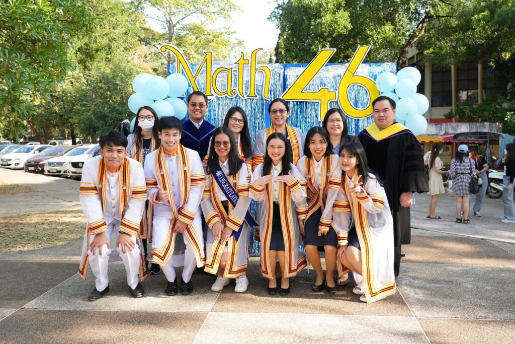สาขาวิชาคณิตศาสตร์ คณะวิทยาศาสตร์ มหาวิทยาลัยขอนแก่น จัดกิจกรรมแสดงความชื่นชมยินดีกับบัณฑิตใหม่ ในวันที่ 16 ธันวาคม 2565 ตั้งแต่เวลา 17:00 น. เป็นต้นไป ณ ลานหน้าอาคาร SC07 คณะวิทยาศาสตร์ เพื่อแสดงความชื่นชมยินดีและเป็นขวัญกำลังใจให้กับบัณฑิตใหม่ทุกท่านที่สำเร็จการศึกษาและเข้ารับพระราชทานปริญญาบัตร ประจำปี 2565