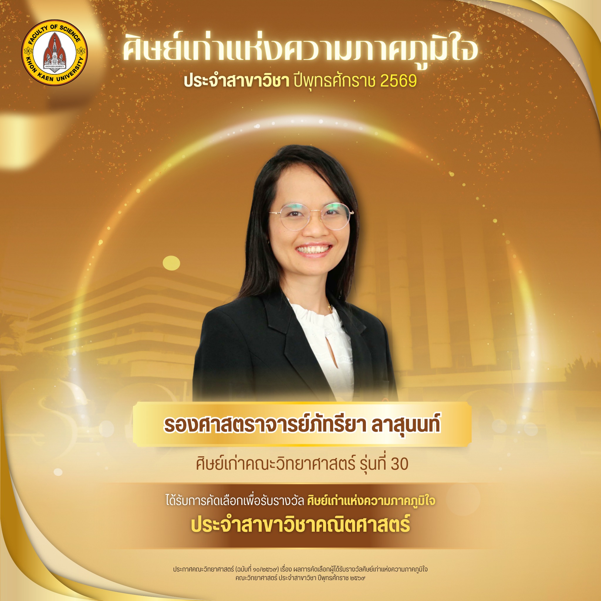 Continue Readingสาขาวิชาคณิตศาสตร์ คณะวิทยาศาสตร์ มหาวิทยาลัยขอนแก่น ขอแสดงความชื่นชมและยินดีเป็นอย่างยิ่งกับอาจารย์และนักวิจัย ที่ได้รับการพิจารณาอนุมัติ “ทุนฝึกอบรมนักวิจัยหลังปริญญาเอกเพื่อผลิตผลงานวิจัยชั้นแนวหน้า (Postdoctoral Training for Frontier Research)” ประจำปีงบประมาณ 2569 จากมหาวิทยาลัยขอนแก่น