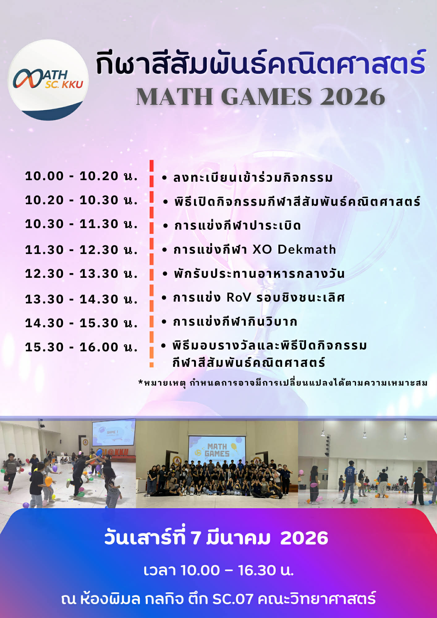 Continue Reading🔥 พร้อมมั้ยชาว Math! “กีฬาสีสัมพันธ์ MATH GAMES 2026” มาแล้ว! 🏆 เสาร์ที่ 7 มีนาคมนี้ เคลียร์คิวให้ว่าง แล้วมาปล่อยพลังความสามัคคีกัน!
