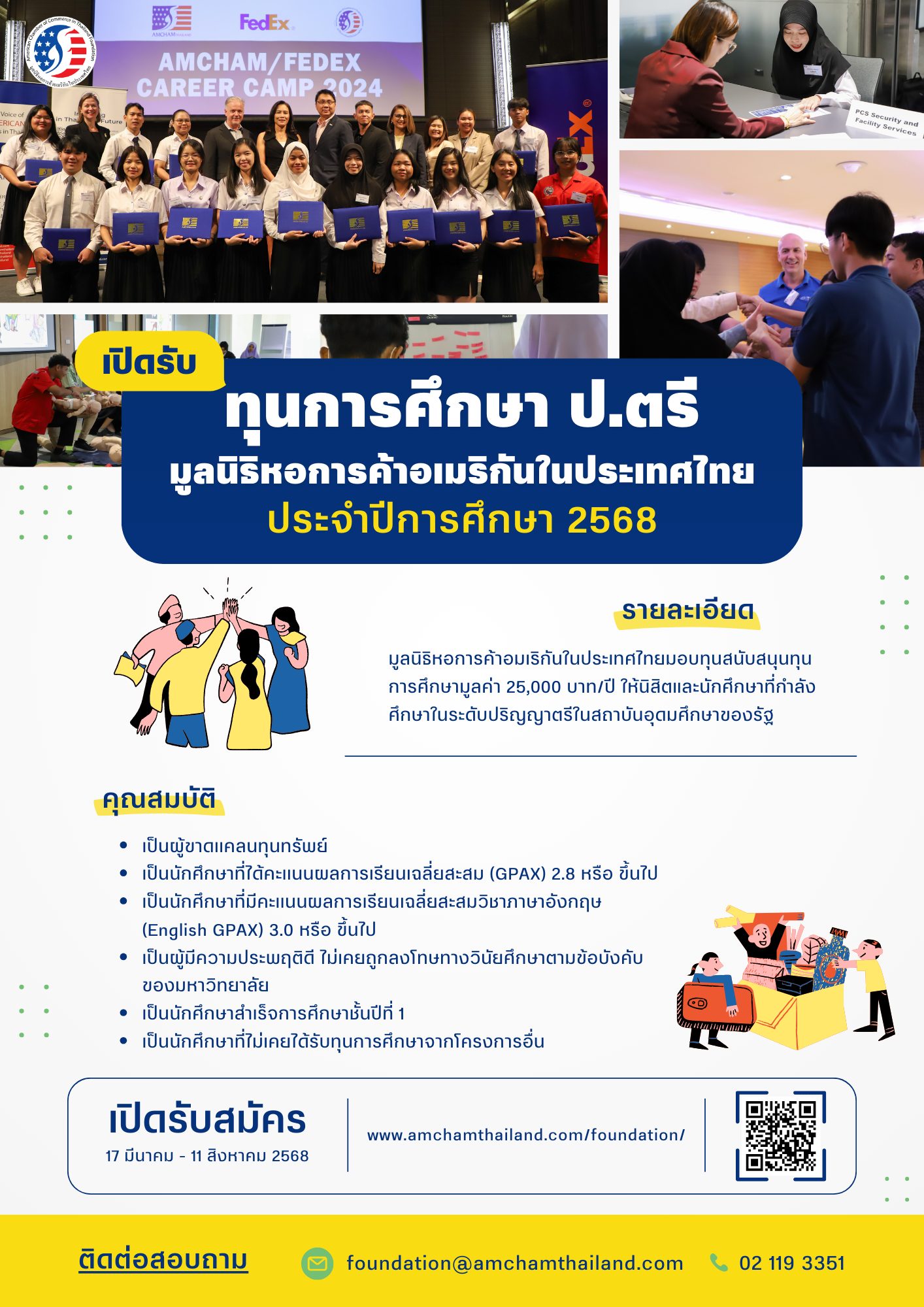 Continue Reading📢📢 ทุนการศึกษามูลนิธิหอการค้าอเมริกันในประเทศไทย (AMCHA…