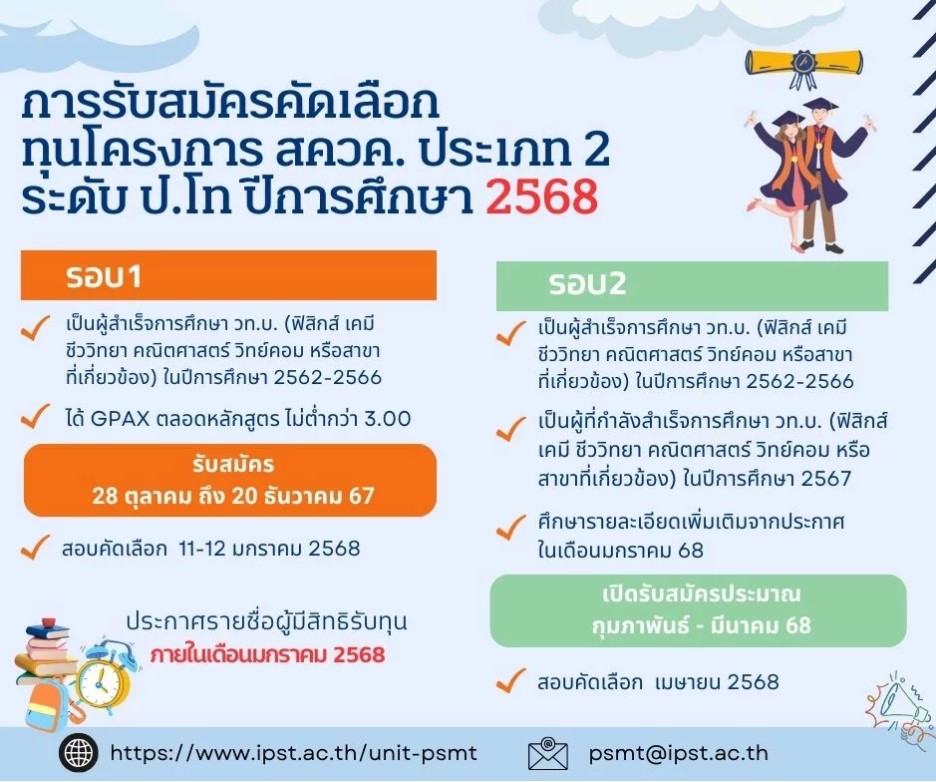 Continue Reading📢📢 ประชาสัมพันธ์ทุนโครงการ สควค. ประเภท 2 ระดับ ป.โท ปี…