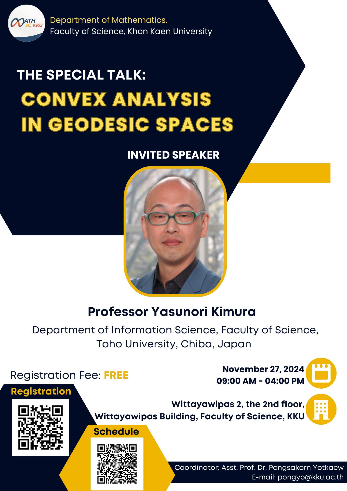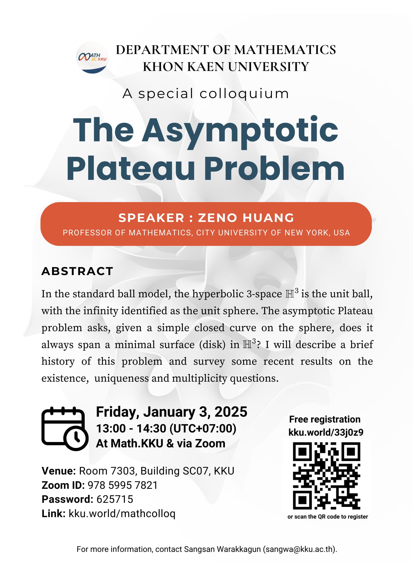 กิจกรรมการบรรยายพิเศษด้านเรขาคณิต 🔹 ในหัวข้อ “The Asymptotic Plateau Problem” ♦️ โดย Professor Zeno Huang 🔹 City University of New York, USA